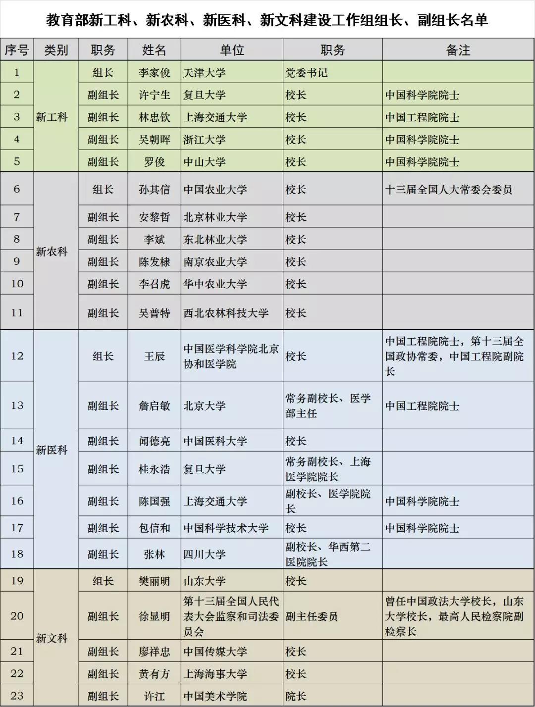 据悉,教育部本次聘任的新工科、新医科、新农科、新文科建设工作组组长、副组长共23位。