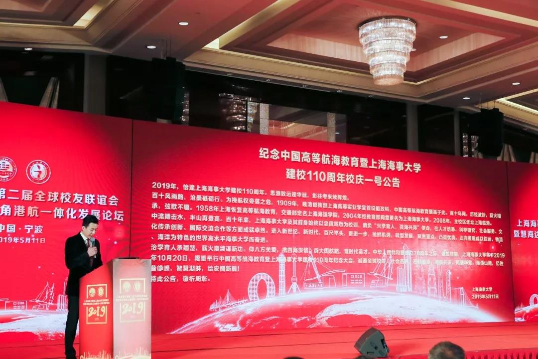 5月11日,上海海事大学第二届全球校友联谊会暨慧海达航长三角港航一体化发展论坛在宁波举行。上海海事大学党委书记宋宝儒,校长、校友会会长黄有方,副校长、校友会副会长杨万枫,学校相关部门和学院负责人,以及来自美国、加拿大、日本、新加坡、中国香港、浙江、北京、上海、广州、深圳、南京、武汉、福建、青岛、广西、潮汕、宁波等全球各地的校友代表400余人参加活动。