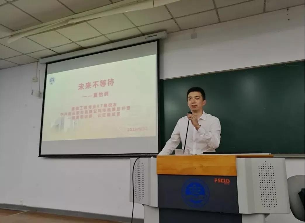 6月12日,信息工程学院邀请通信2007级校友夏怡纯在教学区2A102作“未来不等待”主题讲座,分享求学经历和工作经验。讲座由信息工程学院辅导员李万秀主持,120余位学生共同倾听。