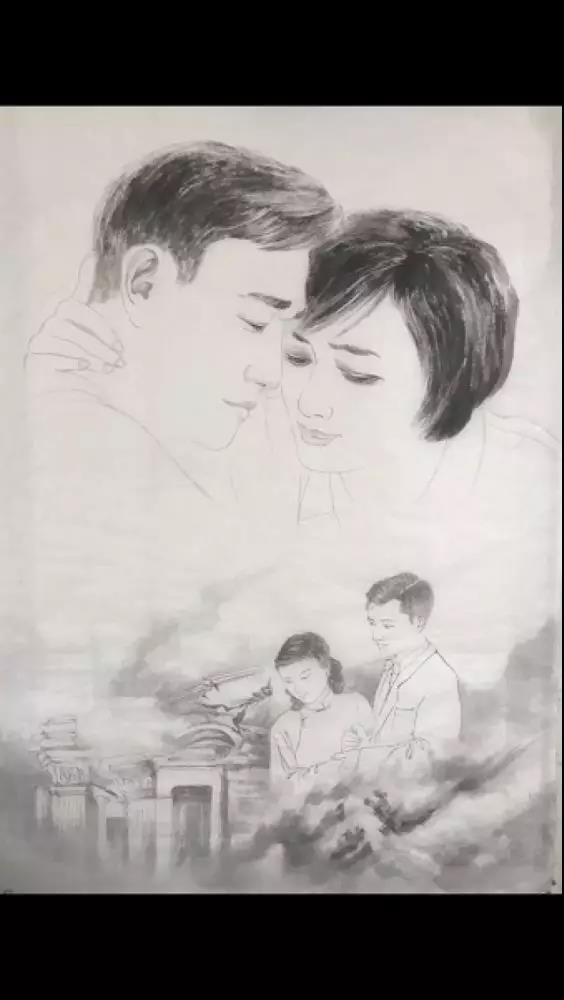 画面上的白衣天使形象是张弛春节期间手绘的,而背景里一对年轻恋人形象却来自一幅电影海报,那是张弛为已故导演彭小莲的电影《请你记住我》所画的海报草图。