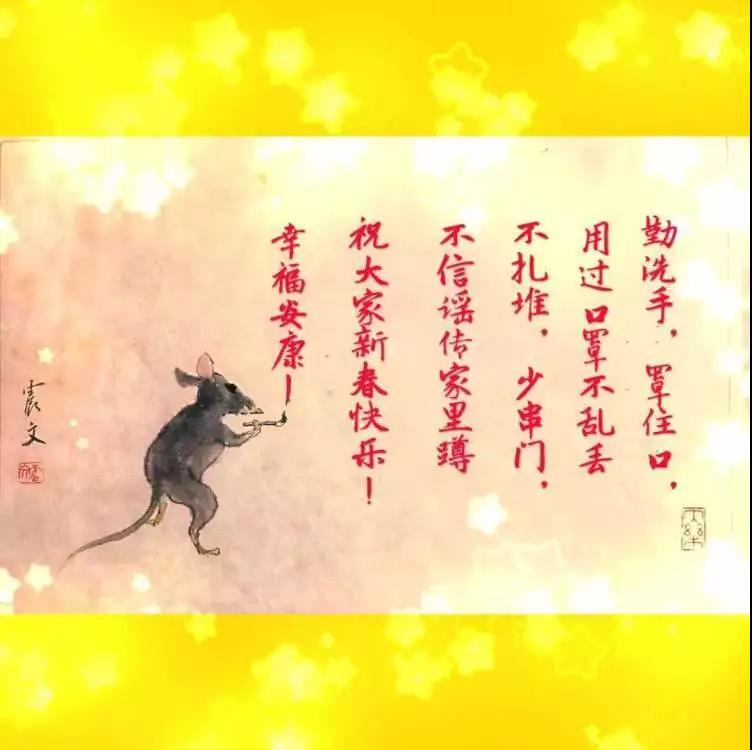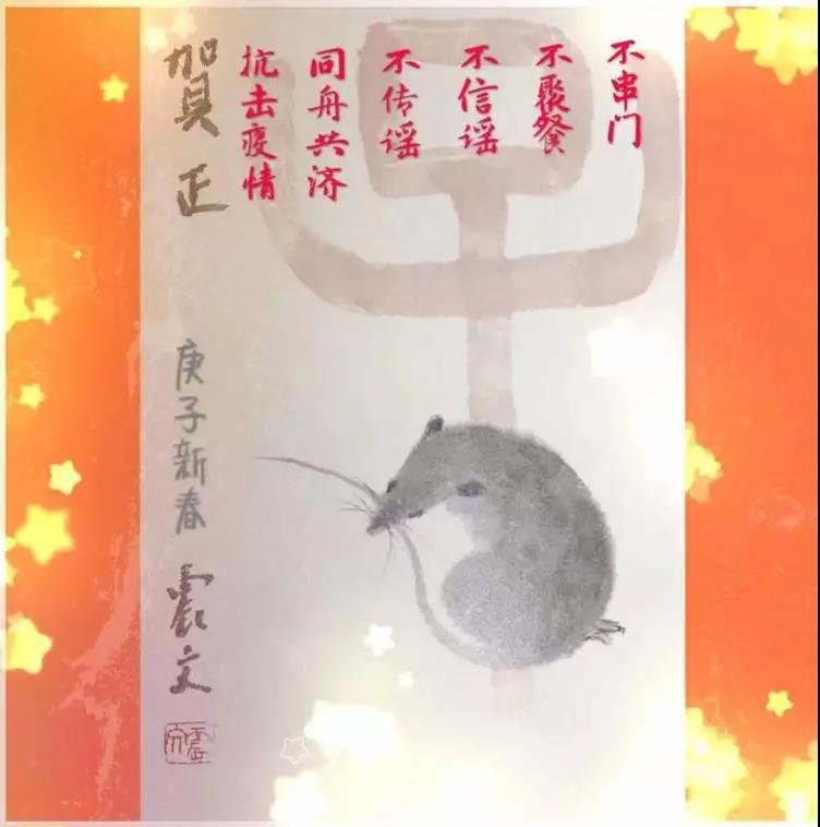 乐震文还翻检出1996年鼠年新春时创作的一批贺岁之作,重新填上万众一心,抗击疫情的贺岁词,号召大家敬畏自然,尊重生命,共同爱护地球家园!