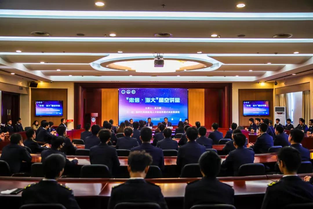 吴文峰校友作“新时代高级航海人才的培养模式与发展路径”主题讲座。他结合自身的成长经历,从“航运人才”“高级船员”以及“未来规划”等方面介绍了新时代高级航海人才应具备的素质和发展方向,并展望未来航运业的机遇与挑战。他勉励在校生加强政治理论素养,做好多学科专业知识的储备,培养应急处突和抗压能力,继续发扬航海精神,以战风斗浪的勇气,脚踏实地的定力,为建设海洋强国、航运强国贡献自己的青春和智慧。