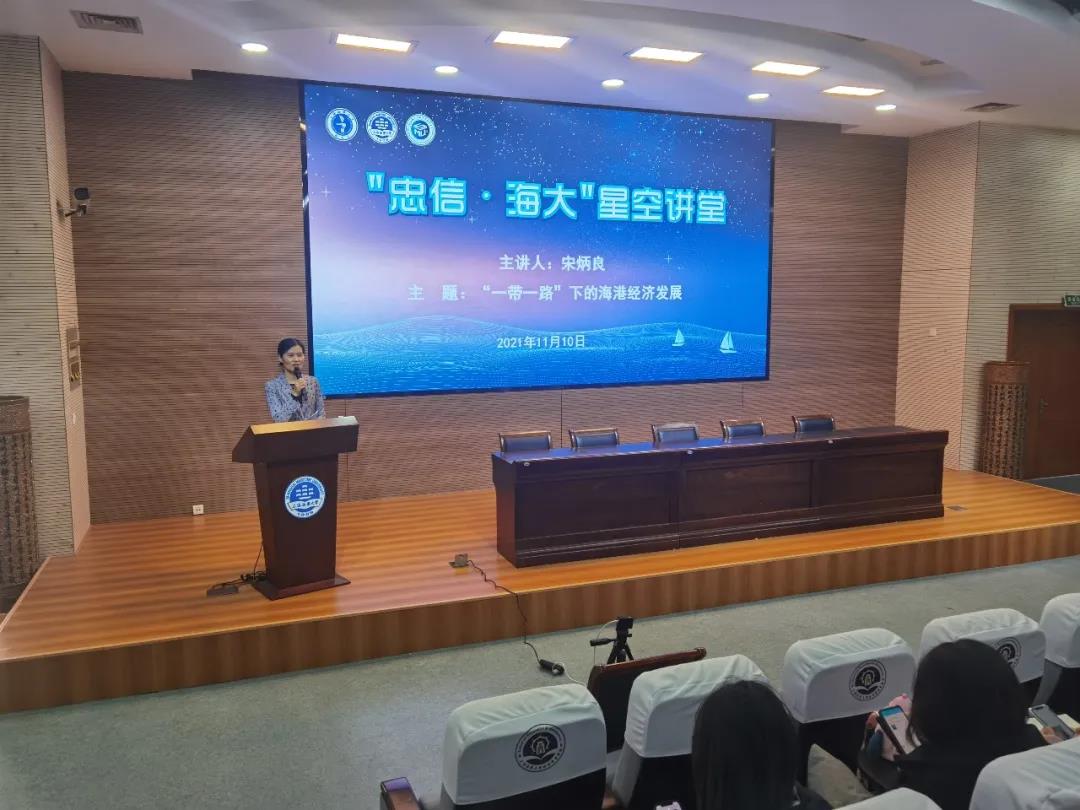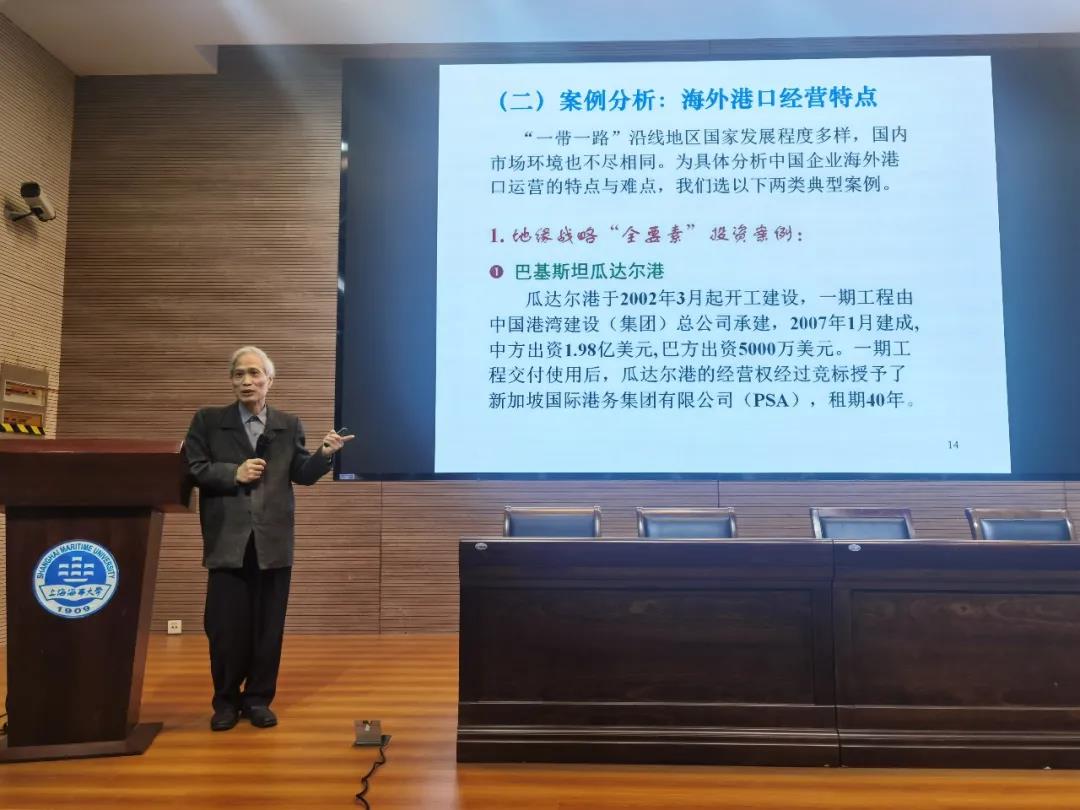 宋炳良教授作题为“‘一带一路’下的海港经济发展”的江座。他结合热点时事,深入浅出地剖析了“一带一路”倡议与我国经济发展、中国企业投资海外港口等方面的关系,通过案例对中国企业及“一带一路”沿线海外港口运营风险等进行了评估分析,并展望中国港口服务业的美好明天。他勉励同学们关注行业发展动态,不断加强学习,增强知识储备。